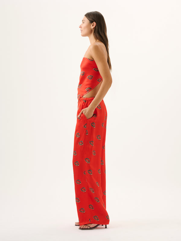 Crafted in our exclusive Jungle Kiss print, the Farrah Scarf is a versatile statement piece designed to elevate any look. Offering endless styling possibilities - wear it as a top, headscarf, or necktie, paired with the Miles Pant for a coordinated ensemble.