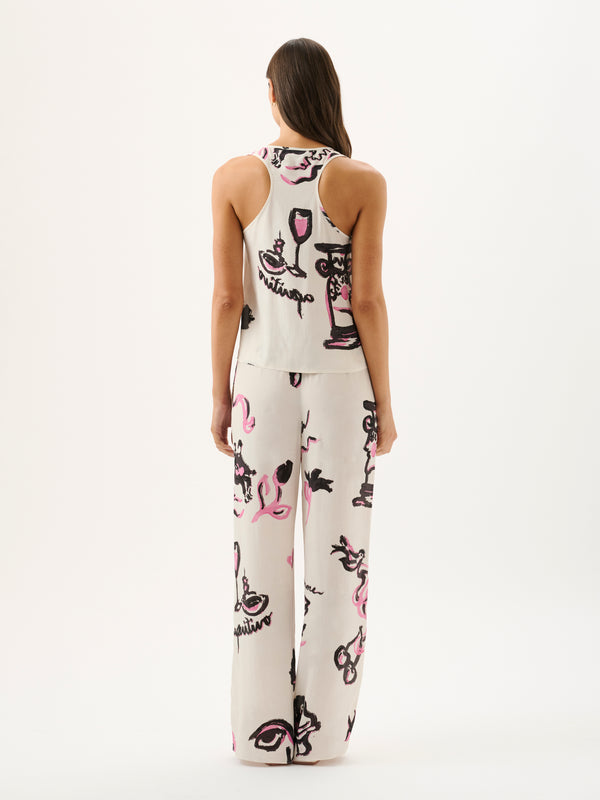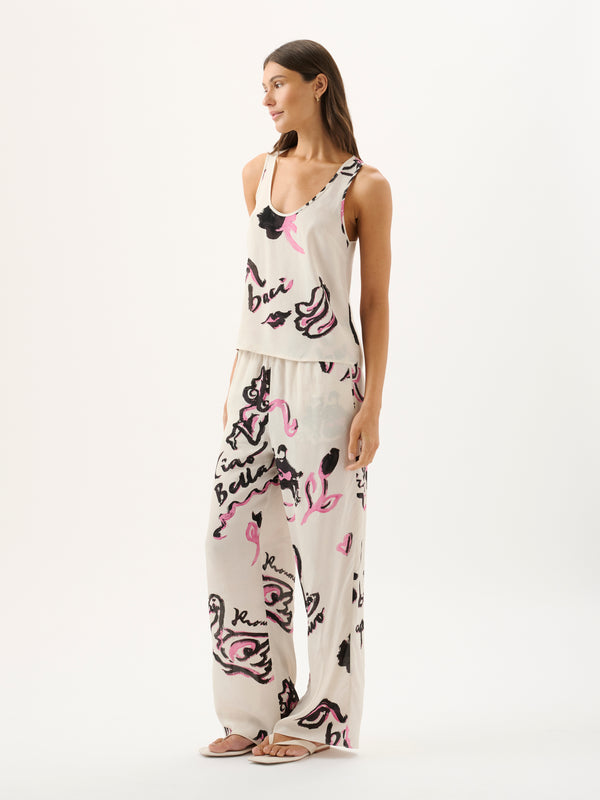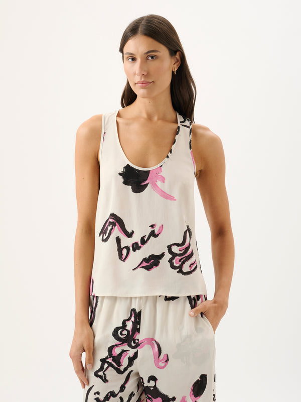 Crafted in the bespoke Baci print, the Leo Cami features a soft scoop neckline and a modern racerback. A refined staple to be paired back with the coordinating Miles Pant in Baci, or effortlessly styled with denim.