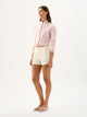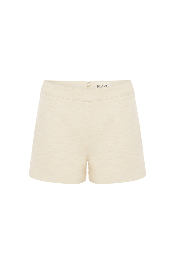 The Reno Short in Ivory is a versatile mini-length silhouette, featuring a flat waistband and an invisible back zip. Style effortlessly with the Estella Vest, offering a modern, polished complete outfit.